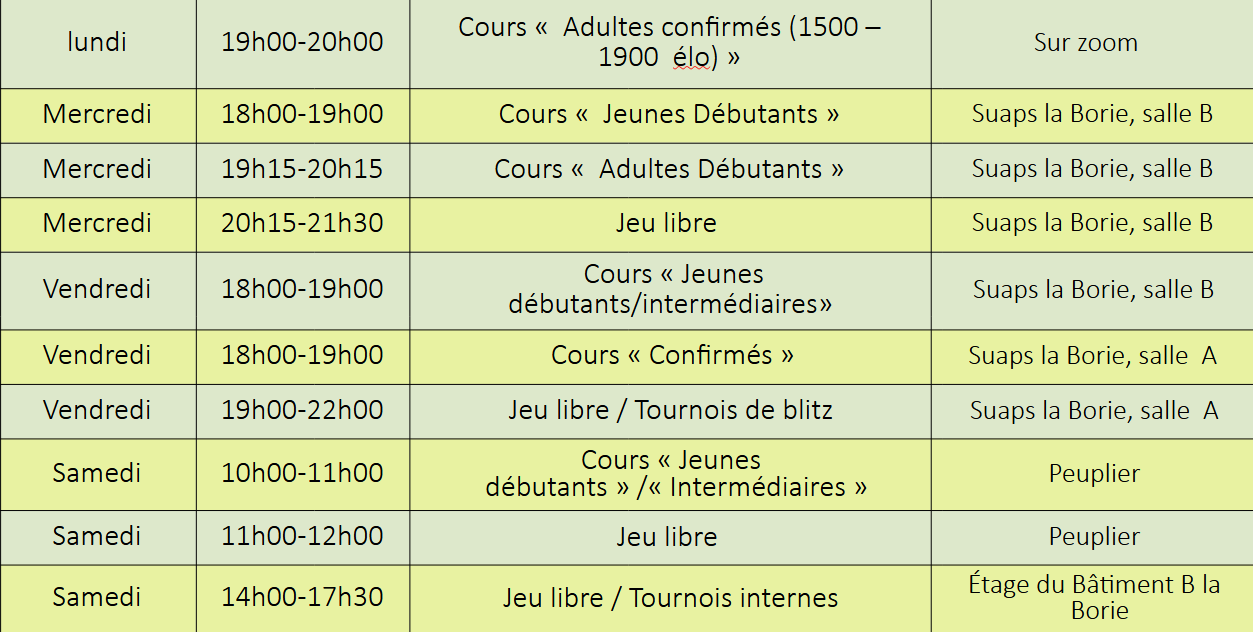 Planning hebdomadaire
